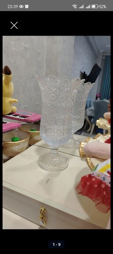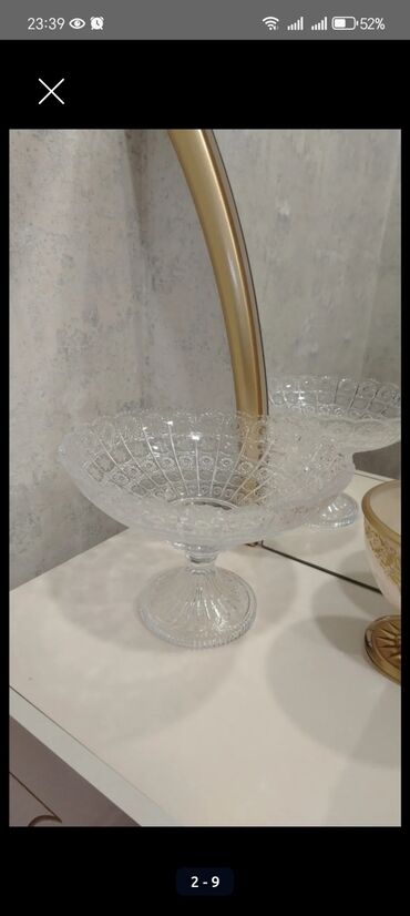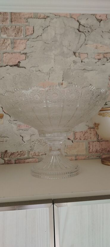 - Komlekt: 1 ədəd ayaqlı meyvə/gülləçi qabı (geniş, dərin kasa forması), 1 ədəd ayaqlı vaza