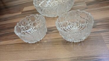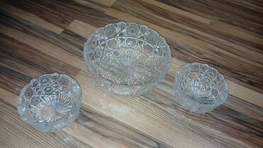 Zərif qab-qacaq və serviz dəstləri ‼️Təcili satış‼️ - Qızılı dekorlu şüşə karaf və qədəhlər: Rəngli (qırmızı-qızılı) motivlərlə əl naxışlı karaf, uyğun kiçik şərab/qədər qədəhləri ilə birlikdə. Ya...