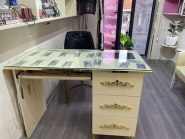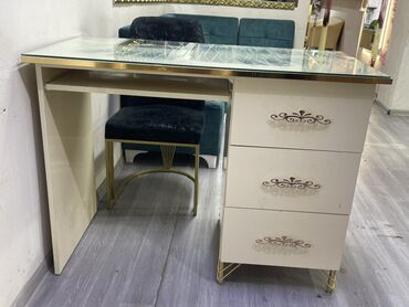 Manikür/iş masası – şüşə üstlü, 3 çekmecəli