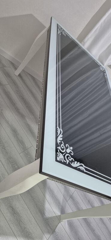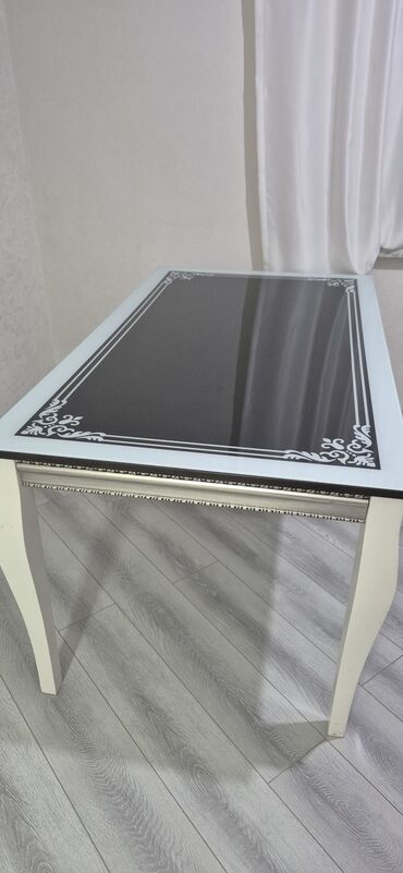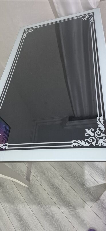 Şüşəli masa (stol). Uzunluq 160 sm, eni 90 sm. Ünvan Yeni Yasamal.
