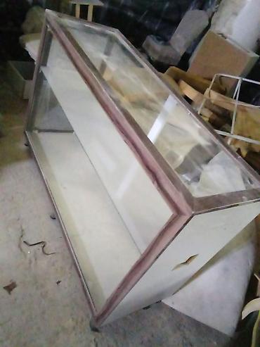 Şüşə vitrin stend - Material: ön, yan və üst hissələri şüşə; karkas