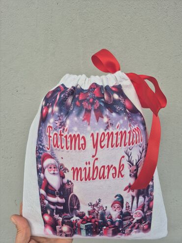 Hədiyyə paketiQiymət böyük ölcü 3.5.balaca 2.5.qiymetde 50nqep yazmaq olmur.Şəxsi adla Yeni il hədiyyə torbaları