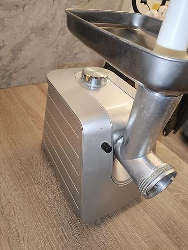 Elektrik ətçəkən maşın( təcili satılır) - Korpus: paslanmayan polad və qara plastik yan hissələr - Ön hissədə metal ət çıxış bloku, xortum və bərkidici vint - İdarəetmə: iki düyməli panel (Start/S...