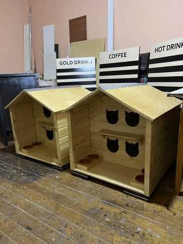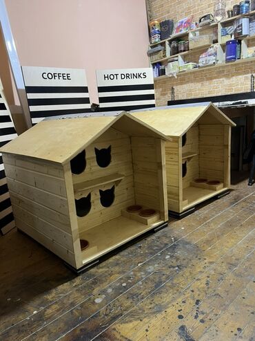Pişik evi , 4 pişik üçün , Yuxarı hissə su yem qabları üçündür geniş su keçirməyən keyfiyyətli taxta yuva.
