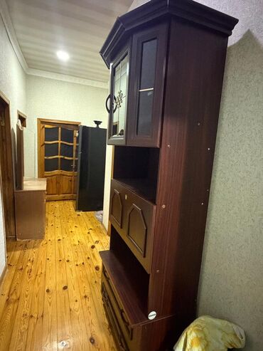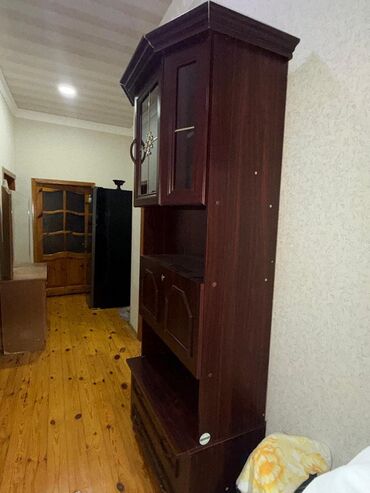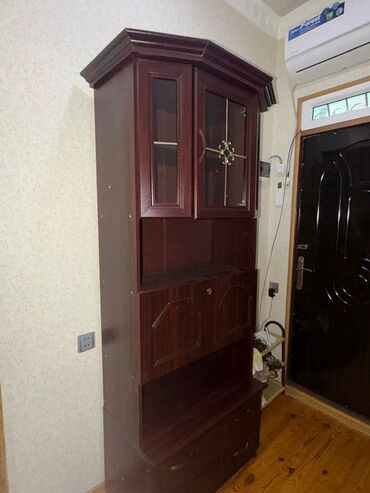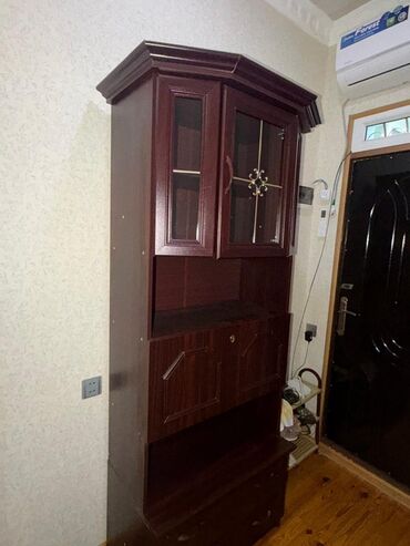 - Üst hissə: şüşəli iki qapı (dekorativ metal naxış və daxili rəf)