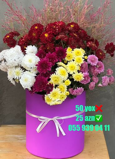 Məhsul: Xrizantema (qırmızı-bənövşəyi pompon sortu) – kəsim və dekor üçün. Bölgələrə çatdırılma mövcutdur ölçüsü 80 sm 070 351 12 50 əlaqə saxlıya bilərsiz
