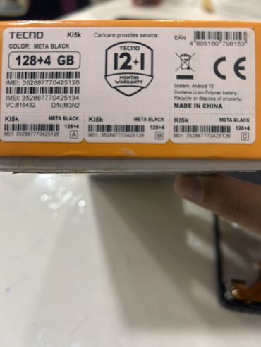 - Rəsmi servis: Tecno Carlcare (qutuda 12+1 ay yazısı var)