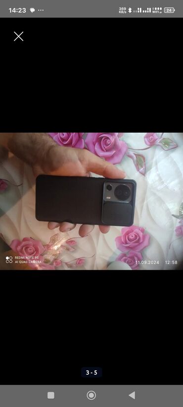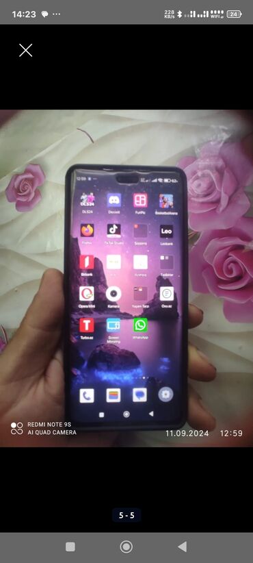 - Ön tərəfdə damcı tipli (notch) çıxıntılı ekran; Android interfeysi, çoxsaylı tətbiqlər (məs., kamera, brauzer, WhatsApp və s.).