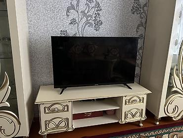 - Ekran: təxminən 43–50 düym diaqonal, nazik çərçivəli düz panel