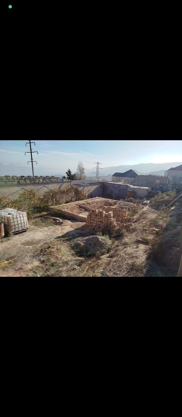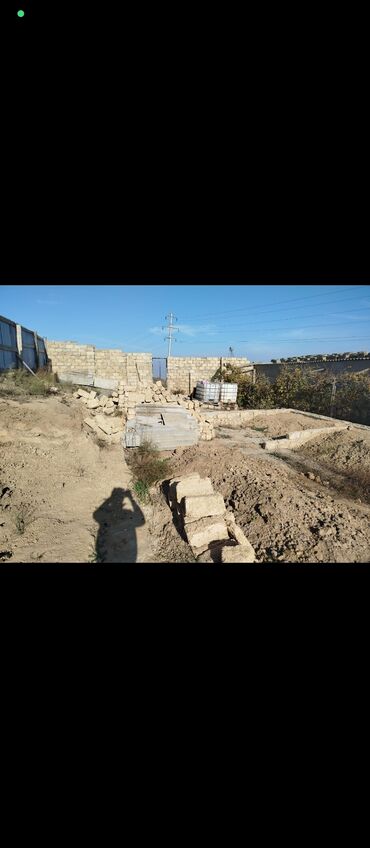- Tikinti: sahədə bünövrə xətləri və lent fundamenti çəkilib, planlanmış ev üçün konturlar hazırdır. Ərazidə tikinti materialları (daş bloklar, şifer vərəqləri və s.) mövcuddur.