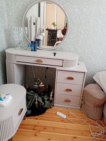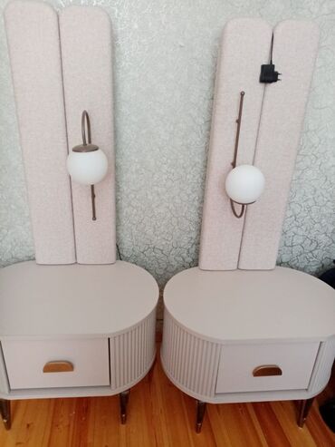 Yataq otağı mebel dəsti əla vəziyyətdədir, yeni kimidir. Güzgünün kənarlarında işıq yanır. Tumbalarin işığı barmaq iziyle yanır.