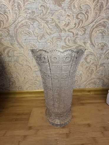 Tom Chex xhrustalı. Kəpəz formalı iri kristal vaza. Bilen bilir qiymətini. Yüngül ağzında defekti var deyə bu qiymətə satılır. - Material: ağır, şəffaf kəsmə kristal - Dizayn: dərin naxışlı (uldu...