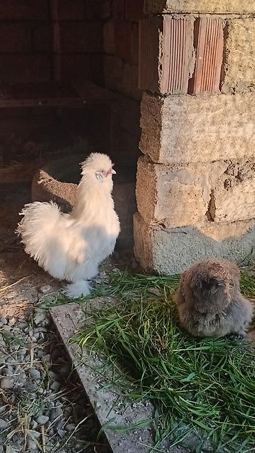 - Cins: Silkie (İpək toyuq) – yumşaq, tüklü lələklər, başda tutqun “tac”, tüklü ayaqlar