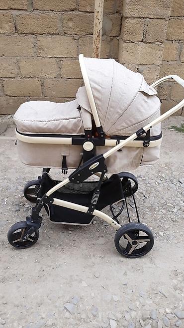Uşaq arabası – bej rəng, körpə beşiyi tipli lyulka modulu ilə.