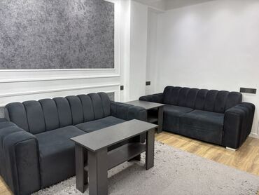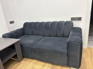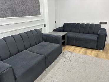 Metall karkaslı kafe/ev oturma dəsti - Komplekt: 1 ədəd dikdörtqan masa + 2 ədəd ikinərlik divan - Stil: loft/industrial - Rənglər: qara metal karkas, açıq ağac fakturalı masa üstü və qolluqlar, ş...