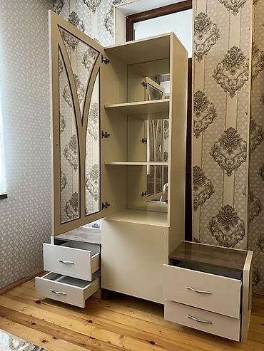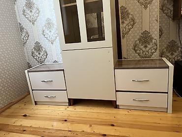 Ağır, sanballı mebellərdir. Qorka və barnik əla vəziyyətdədir. Güzgülünün isə sürməsində balaca qopma var, bərpa oluna bilər. Ona görə münasib qiymətə qoyulub. ev balaca olduğu üçün satılır.