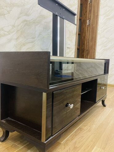 - Üst hissə: qalın temperli şüşə səth – TV, soundbar və dekor üçün geniş yer
