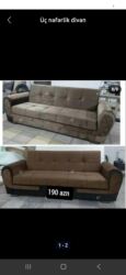 Si̇fari̇şle hazirlanir divan 199❌189 manat rəng seçimi var ölçü uzunluq 2m10sm açılan, bazali keyfiyyətli türkiye nabuk parçalari və 22"lik qupka sıxlığı ilə hazırlanır yastıq cütü 15 azn şeh...