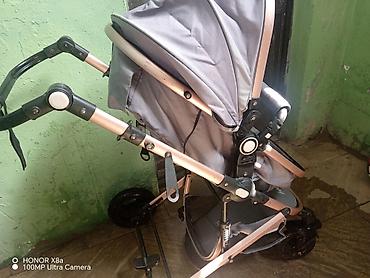 Uşaq arabası – 4 təkərli, iri diametrli şinlərlə - Rəng: Açıq boz (daxildə naxışlı parça). - Gəzinti tipli oturacaq: yumşaq və dərin oturacaq hissəsi, tənzimlənən kürəklik. - Təhlükəsizlik: 5 nöqt...