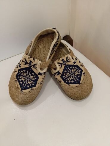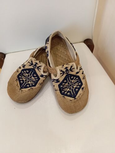 Etno üslublu kətan espadri lər - Rəng: bej üstündə tünd mavi naxışlı