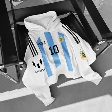 - Argentina zolaqlı dizaynlı “10” nömrəli kapüşonlu svitşot. Ön hissədə mavi-ağ şaquli zolaqlar, “MESSI” yazısı, 10 nömrə və AFA loqosu, qollarda 3 xətt motivi.