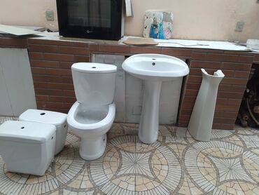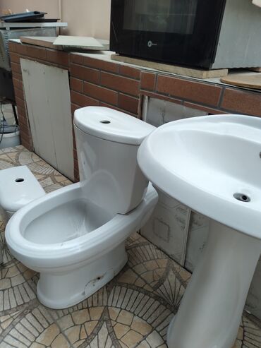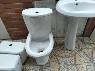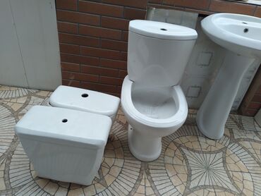 Bej rəngli unitaz dəsti, müasir dizaynlı və quraşdırılması asan. Su