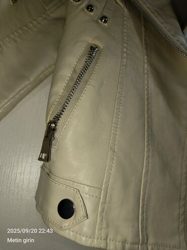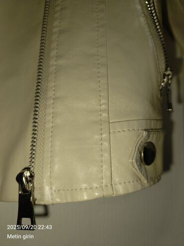 - Dizayn: asimmetrik fermuarlı klassik biker yaxası, metal düymə və rivet detalları