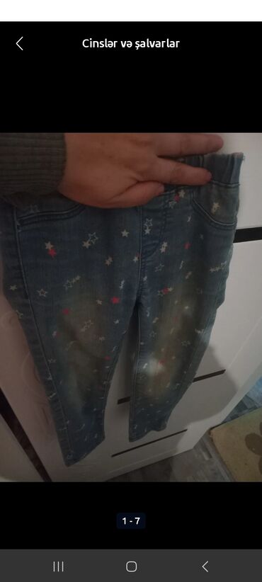 - Model 3: Açıq mavi fon üzərində ulduz naxışlı cins. Elastik bel, rahat dar kəsim, yan ciblər.