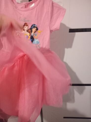 Məhsul: Disney Store qız uşaq paltarı - Rəng: parlaq fondu olan tünd çəhrayı/mağenta - Model: nazik çiyinli, düz kəsim, ətək hissəsi volanlı - Material: atlas əsaslı, üst qatında xırda tor naxışlı...