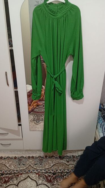 2) Yaşıl rəngdə uzun don. Büzgülü, qatı yaxa, uzun ətək, rezinli manjetli uzun qollar və eyni parça kəmər.