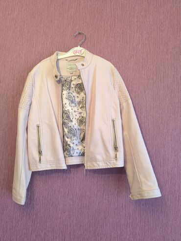 2) Açıq krem rəngli qız uşaq üçün eko-dəri üslubunda jaket