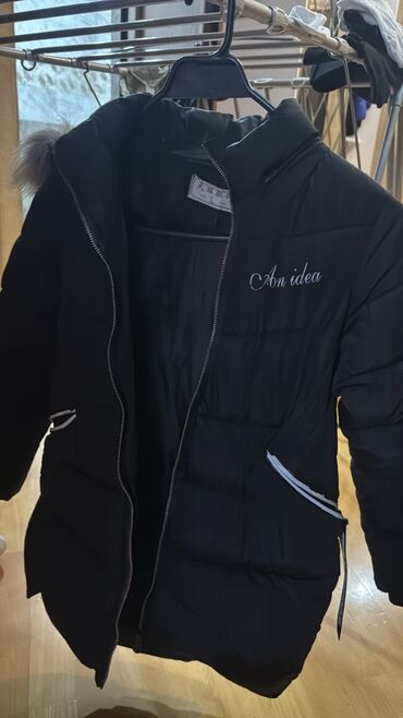 Uşaq üçün qışlıq şişmə kurtka - Rəng: qara, parlaq fakturalı - Ölçü etiketində: 120 (təxmini boy 8-9 yaşa uyğun) - İsti, qalın içlikli - Kapüşonlu, kapüşonda tüklü bəzək - Tam ön fermuar - İki böy...