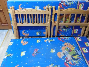 - Ölçü (təxmini): standart tək nəfərlik uşaq çarpayısı ölçülərinə uyğun (şəkillərdə iki ədəd döşək yan‑yana görünür).