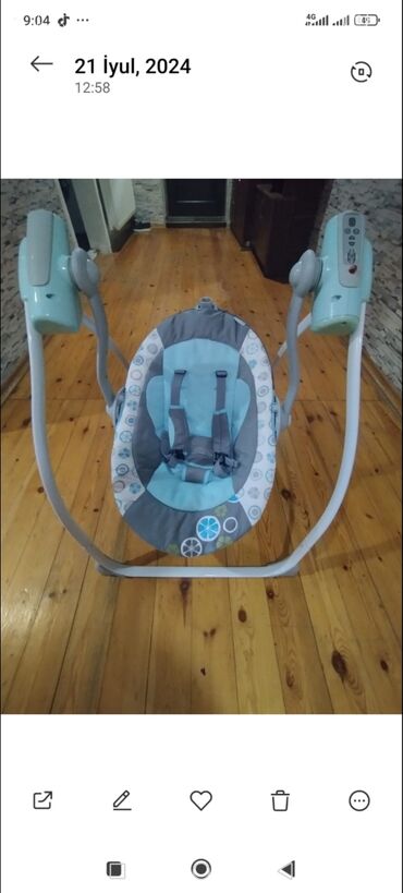 Ev şəraitində körpəni sakitləşdirmək, yatızdırmaq və əyləndirmək üçün funksional elektrikli beşik-yelləncək.