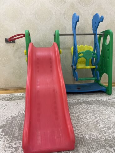 - 3‑ü 1‑də konstruksiya: slayd (qırmızı enişli xizəksürmə), yelləncək və mini basketbol səbəti.