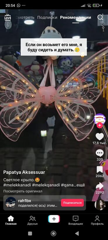 LED işıqlı mələk/çəhrayı kəpənək qanadları