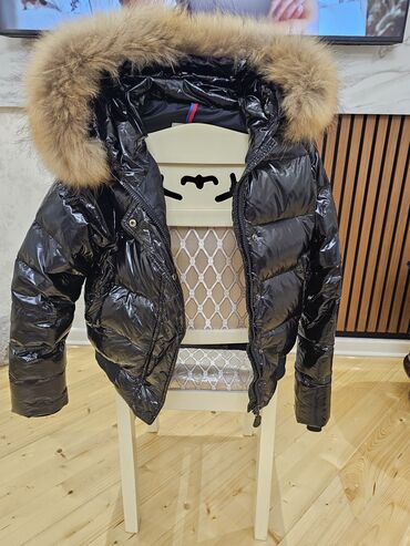 Moncler uşaq şişmə qış gödəkçəsi - Rəng: qara, parlaq faktura - Model: kapüşonlu, kapüşonda iri tük (süni/xəz görünüşlü) - Material: suya davamlı parlaq üst qat, istiliyi saxlayan şişmə doldurma -...