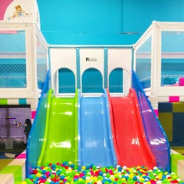 - Slaydların enişi yumşaq top hovuzuna düşür; hovuzda çoxrəngli plastik toplar