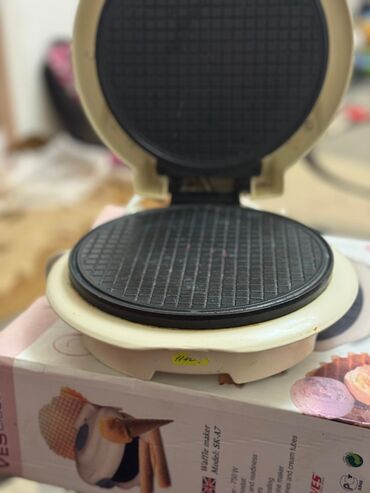 - Qutusu mövcuddur; üzərində model olaraq “Waffle maker, Model: SK-47, 750W” qeyd edilib