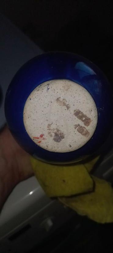 Mavi keramik dekorativ qab - Material: Keyfiyyətli keramika, parlaq qlazur örtük - Rəng: Dərin kobalt-mavi - Bəzək: Əl işi qızılı naxışlar və incə çiçək motivləri; boğaz hissəsində qızılı zolaq və...