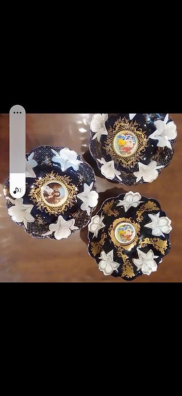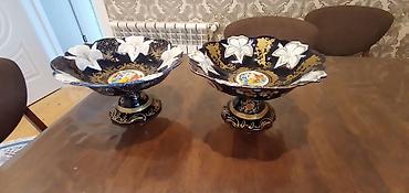 Vazalar.qara gul qablari boyuk 60,balaca 50,.boz lepkali gul qabi 50 azn,balaca bagema guldan 40azn.hec bir qopuq ciziq yoxdu.85 ci ilin cox kefiyyetli guldanlaridi.