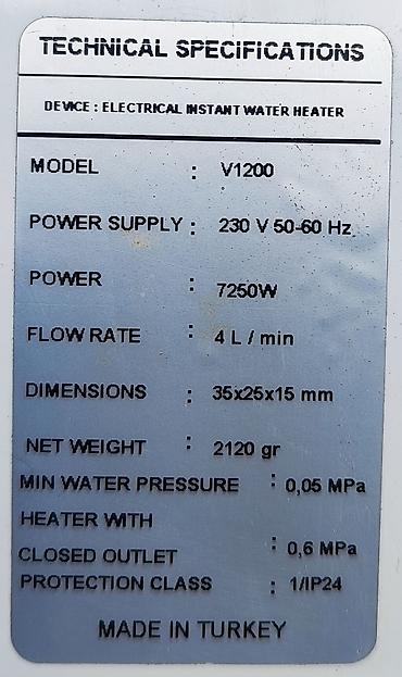 - Növ: Elektriklə işləyən ani su qızdırıcısı (Electrical Instant Water Heater)