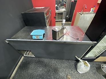 - 1 ədəd şüşə qapılı masaaltı/alt soyuducu, üstü paslanmayan polad iş səthi ilə