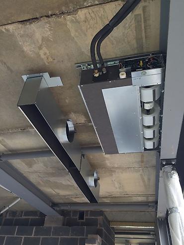 - Daxili blokların asma tavan arxasında xətti hava paylayıcılarla qoşulması