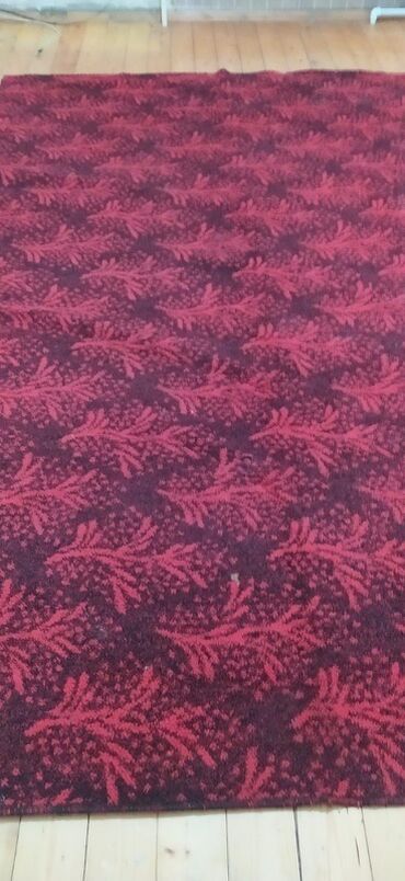 - Bordo-qırmızı tonlarda, təkrarlanan budaq/yarpaq naxışlı xalça. Səthdə relyefli hiss olunan naxışlar vizual dərinlik yaradır. İsti rəng gamması sayəsində zal, yataq otağı və ya kabinet üçün uyğundur.