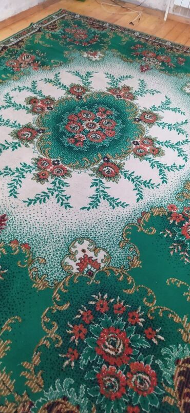 - Yaşıl-ağ rəng palitrasında klassik gül və ornament motivləri ilə toxunmuş xalça. Mərkəzdə iri medalyon, ətrafında çiçək buketləri və bəzək haşiyəsi. Dərin yaşıl, zümrüd, qızılı və qırmızı tonların harmoniyası interyerə klassik aura qatır. Otaq üçün iri ölçülü modeldir, haşiyəli kənarlar mövcuddur.