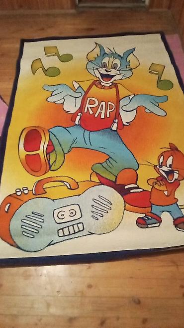 - Uşaq xalçası: sarı-narıncı fon üzərində mavi, qırmızı, yaşıl detallı, “RAP” yazılı cizgi qəhrəmanları və musiqi notları