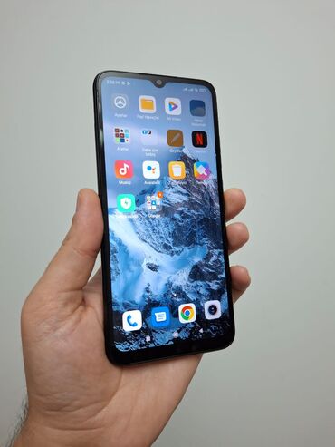 Redmi smartfon - Arxa hissədə böyük dairəvi modulda AI Camera yazılı çoxlu kamera sistemi - Tam ekran ön panel, yuxarıda mərkəzdə kamera üçün kiçik çıxıntı (punch‑hole) - Qara rəngli korpus, düz k...