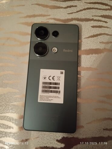 Məhsul: Xiaomi Redmi smartfon Xüsusiyyətlər: - Arxa paneldə Redmi loqosu, CE/EAC sertifikat işarələri və model məlumat stikerləri - Dairəvi modulda çoxsensorlu arxa kamera sistemi: 50MP əsas kamer...