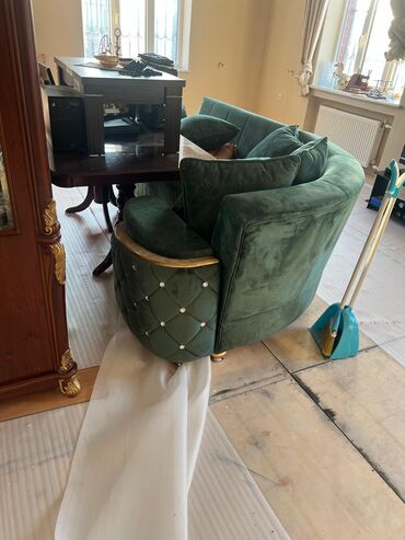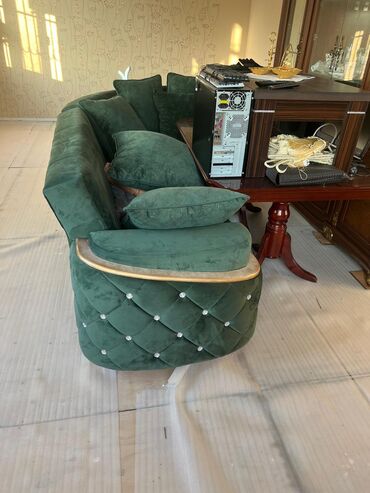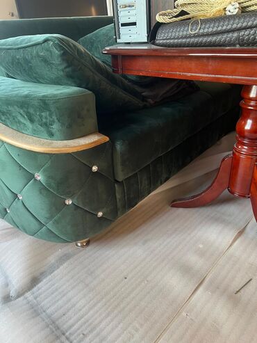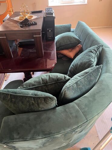- Parça: yumşaq məxmər toxuma, dərin yaşıl rəng.